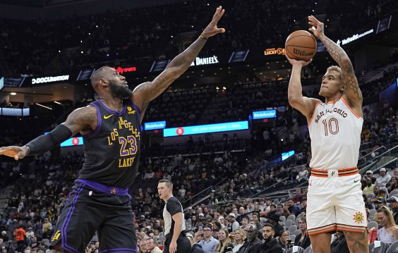 籃球直播吧12月16日訊 NBA常規(guī)賽,主場作戰(zhàn)的圣安東尼奧馬刺以129-115擊敗洛杉磯湖人。文班亞馬13分15籃板5助攻,詹姆斯23分7籃板14助攻。