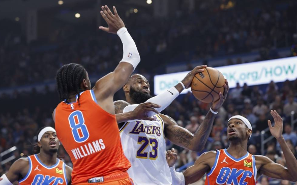 比賽開(kāi)始,變陣的湖人防守端并沒(méi)有很好地限制住對(duì)手,亞歷山大進(jìn)攻端非常穩(wěn)定再次單節(jié)上雙,而八村塁也成為替補(bǔ)奇兵,雙方展開(kāi)對(duì)攻戰(zhàn),雷霆首節(jié)轟出39分領(lǐng)先3分,次節(jié)拉塞爾里突外投連砍8分,湖人一波13-3攻擊波直接反超比分,霍姆格倫攻防建功止血,但湖人接連中投又是11-2進(jìn)攻波再次拉開(kāi)雙位數(shù)領(lǐng)先,半場(chǎng)湖人領(lǐng)先12分。下半場(chǎng),雙方上來(lái)展開(kāi)拉鋸戰(zhàn),詹姆斯里突外投連續(xù)取分,加上與濃眉的配合,湖人一度拉開(kāi)20分以上領(lǐng)先,亞歷山大單節(jié)15分又是苦苦支撐,末節(jié)杰倫-威廉姆斯聯(lián)手霍姆格倫追分,詹姆斯里突外投連砍15分幫助湖人牢牢守住雙位數(shù)左右領(lǐng)先,最終湖人力克雷霆,終止4連敗。